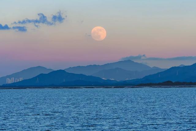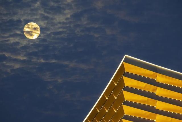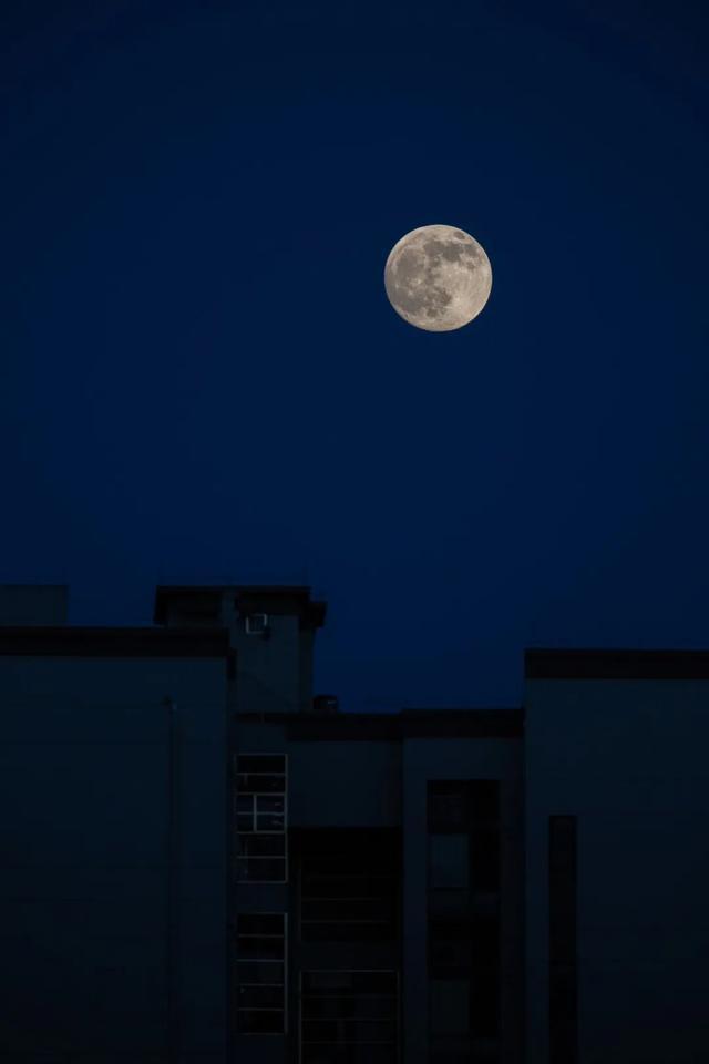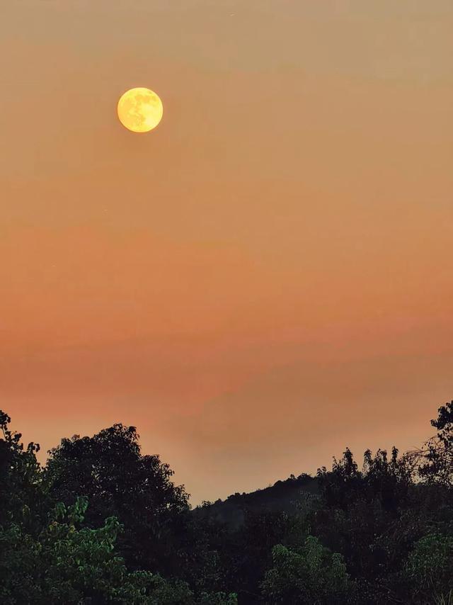 一轮又大又圆的月亮悬挂高空
